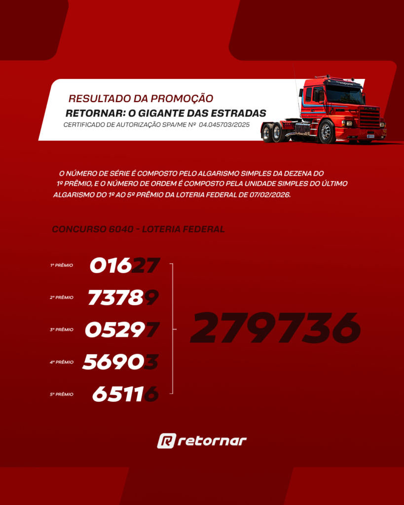 A promoção  “Retornar: O Gigante das Estradas foi devidamente autorizada sob o número SPA/ME No 04.045703/2025, em total conformidade com a legislação brasileira.